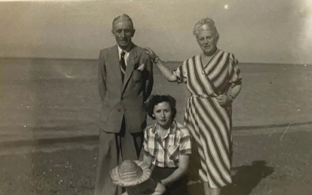 Bob is 1 year old (1949) with his mom and grandparents on Noirmoutier Island, France